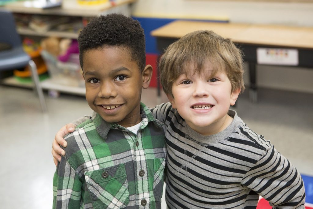 He likes to make friends – and loves to make people laugh. He’s become a helper in the classroom, and is protective of other children.